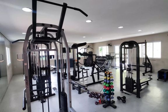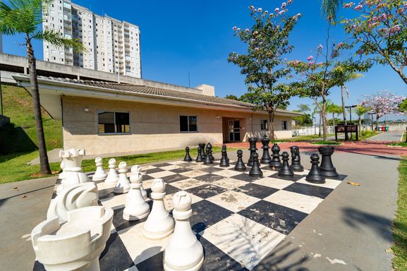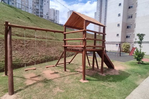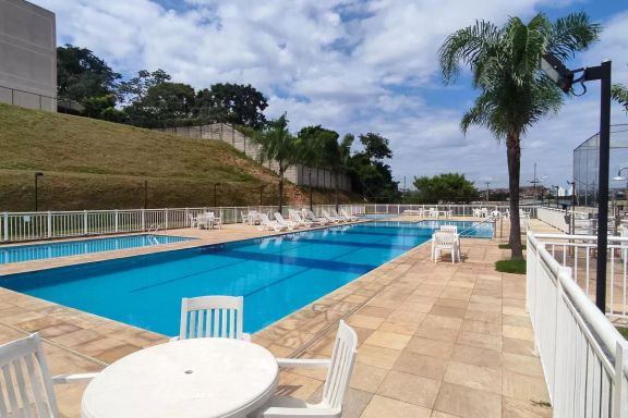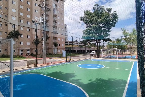O condomínio tem a estrutura de lazer completa: piscina, salões de festas, salão de jogos, churrasqueiras, playground, academia completa, sala de ginástica, quadra poliesportiva, campo de futebol e muito mais! Estacionamento interno para visitantes.
