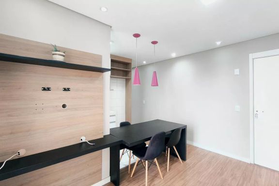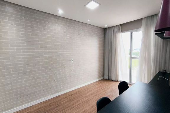 Sala de jantar e sala de estar com varanda