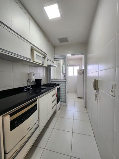 Cozinha e área de serviço com armários planejados