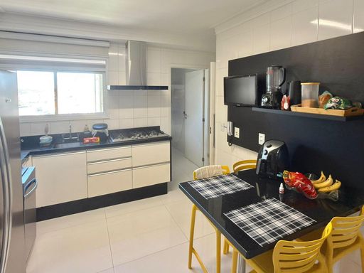 Ampla cozinha e área de serviço com armários, despensa e banheiro de serviço. Hall privativo.