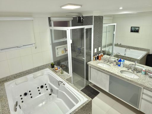 Condomínio com piscinas climatizadas, churrasqueira, academia, espaço mulher, brinquedoteca, quadra poliesportiva, mini campo de futebol, quadra de tênis, sauna, salão de jogos adulto e infantil, salões de festas adulto, pet place, playground, gerador, mercadinho, home office, sala de crossfit e estacionamento coberto para visitantes.