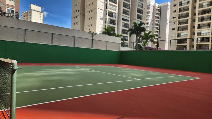 Condomínio com portaria 24h, três piscinas climatizadas sendo um piscina com raia de 25m, três salões de festas, dois salões de jogos, churrasqueira, playground, academia, espaço mulher, praça do fogo, gerador, quadra poliesportiva, quadra de tênis, mini campo de futebol, sauna, home office, mini mercado, sala de crossfit, brinquedoteca, pet place e estacionamento coberto para visitantes.