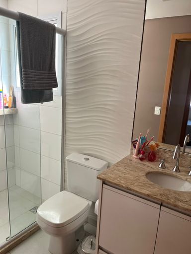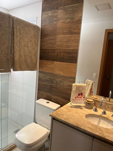 Banheiros com gabinete, box blindex, duchas e espelhos