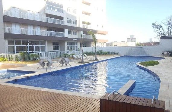 Condomínio com lazer completo: piscinas, churrasqueira, academia, brinquedoteca, quadra poliesportiva, salão de jogos, salão de festas, playground e estacionamento fechado para visitantes.
