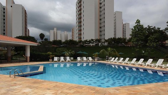 Condomínio com portaria, segurança 24 horas, estacionamento para visitantes e área de lazer com piscinas adulto e infantil, academia, quadras esportivas, salão de festas e churrasqueira.