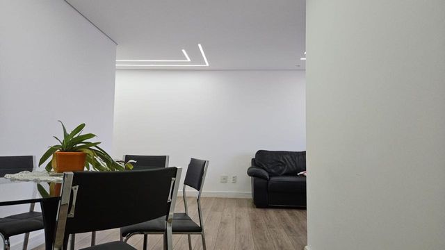 Sala de 2 ambientes e com teto rebaixado em gesso e varanda