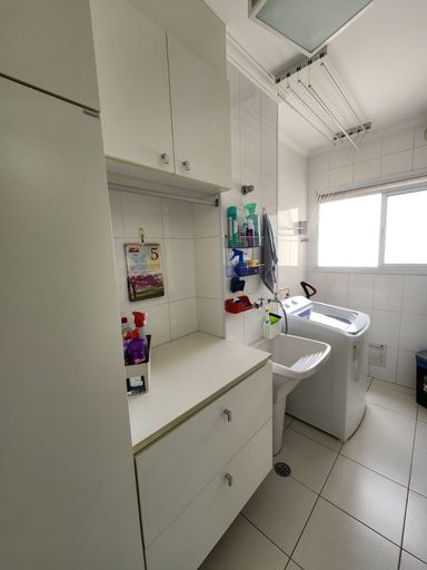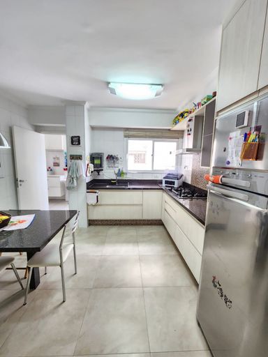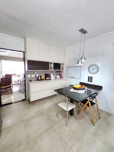 Cozinha equipada com eletros, área de serviço com armários planejados, despensa, aquecedor a gás e entrada separada