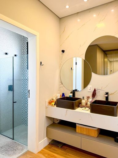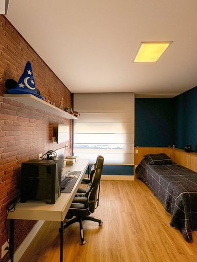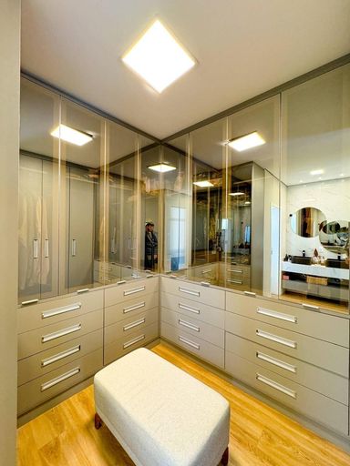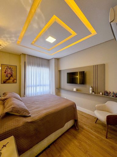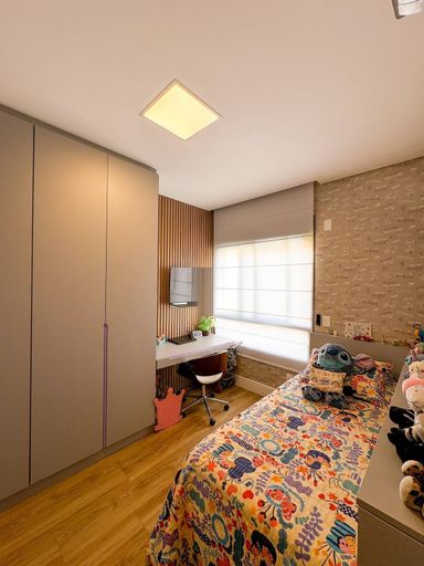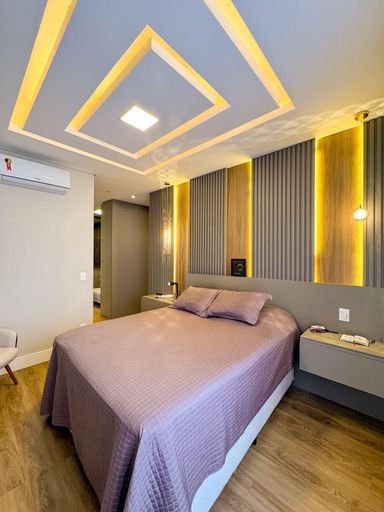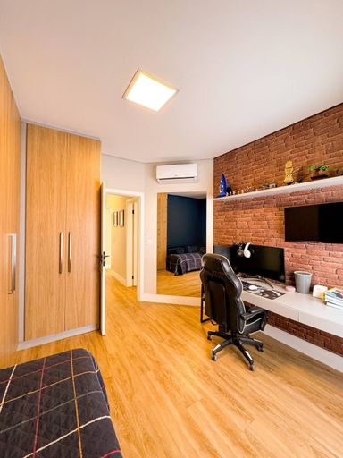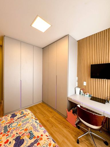 3 dormitórios sendo uma suíte master com closet, todos repletos de armários e ar condicionado