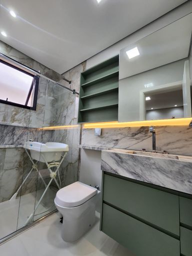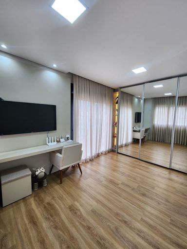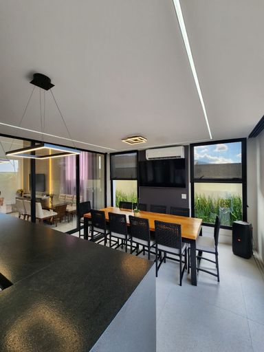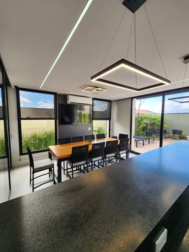 Parte térrea com sala de TV/estar e sala de jantar, suíte/escritório completo e com ar condicionado, lavabo