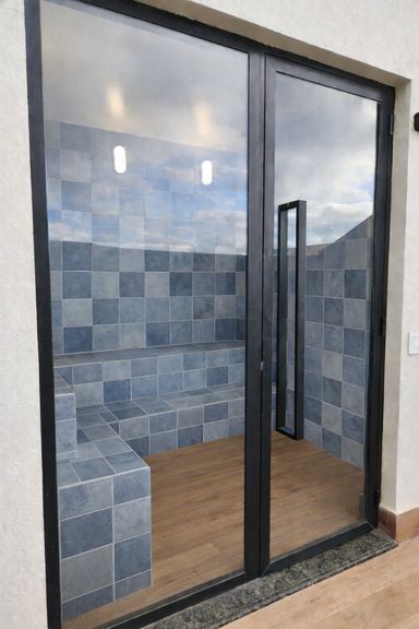 Piscina com hidromassagem e aquecimento solar, sauna a vapor e banheiro externo