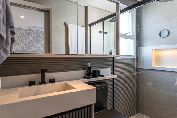 4 suítes repletas armários planejados, sendo uma master com varanda privativa, banheira e closet