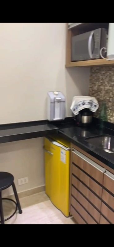 banheiro e copa pronta com armário e frigobar