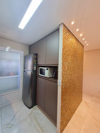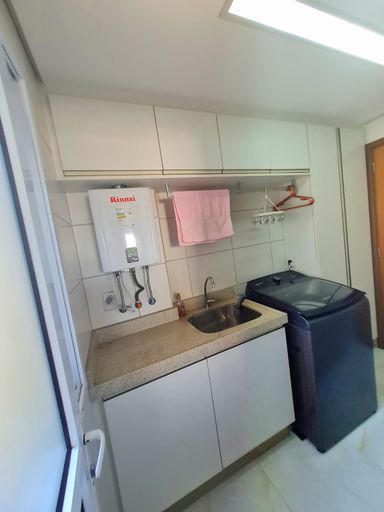 Área de serviço com armários planejados, entrada privativa e aquecedor a gás