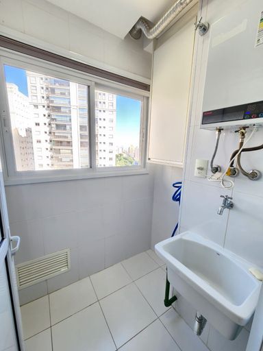Lavanderia com armário e aquecedor á gás