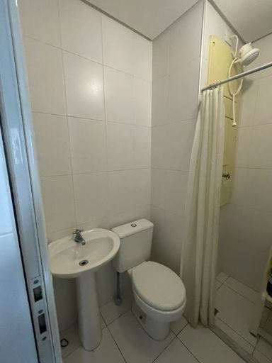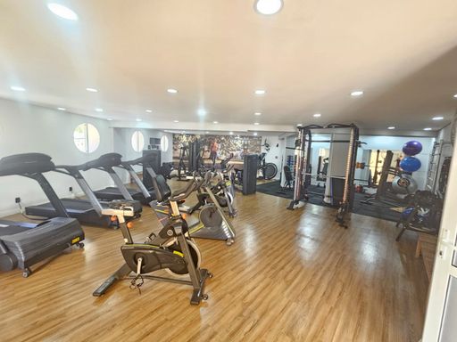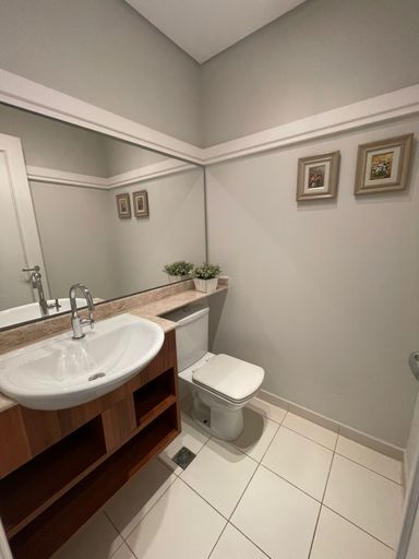 Sala de estar e jantar com ar condicionado, lavabo